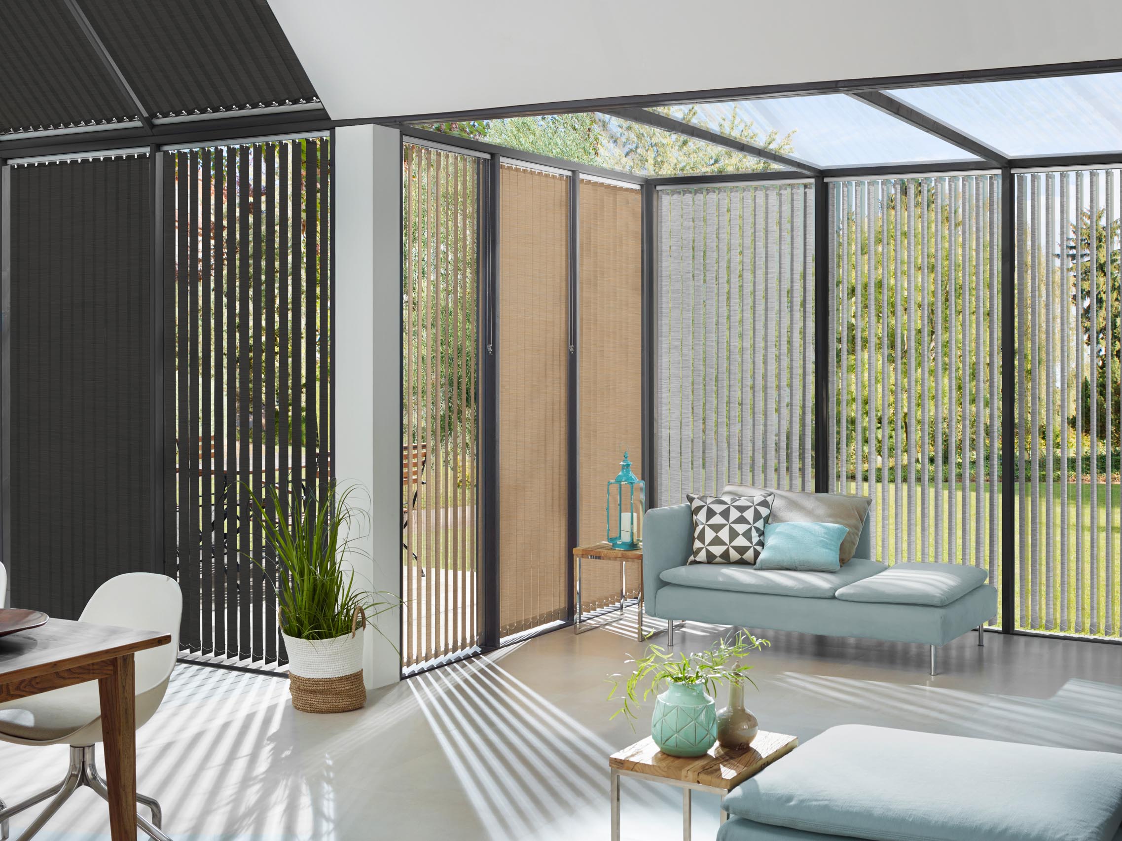 Der wirkungsvolle Sonnen- und Sichtschutz, mit dem Sie die Helligkeit in Räumen immer wieder neu wählen können. Ob Wintergarten oder am Fenster, auch Sonderformen lassen sich nach Ihrem Geschmack gestalten.