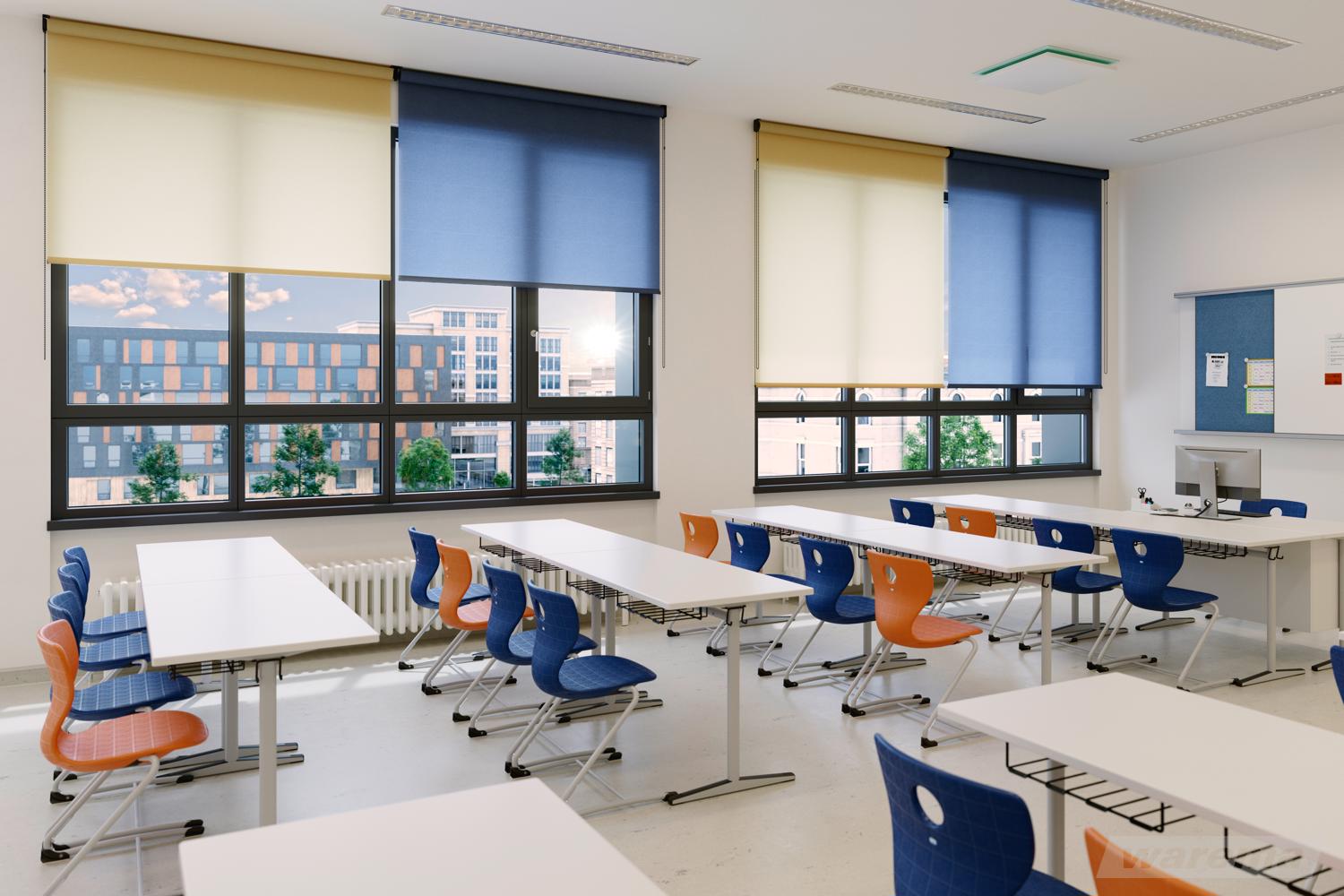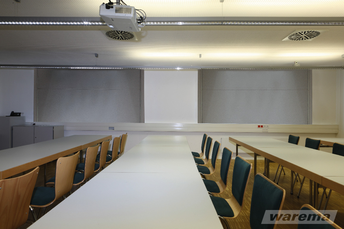Tageslicht sorgt für gute Laune. Es gibt jedoch Situationen, in denen es stört. So z. B. bei Präsentationen in Konferenz- und Besprechungsräumen. Mit einer Raumverdunkelung sperren Sie das Tageslicht zeitweise zuverlässig aus. Wenn sie gerade nicht benötigt werden, machen sie sich in ihrer Kassette unsichtbar bis zum nächsten Einsatz.