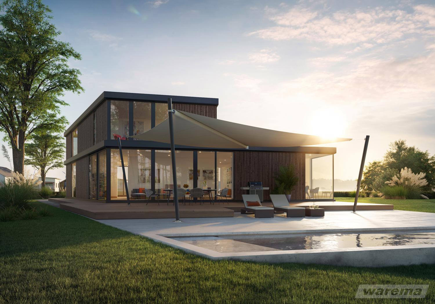 Mit Ihrer luftig eleganten Optik verleihen WAREMA Sonnensegel jedem Gebäude das gewisse Etwas. Sie sind attraktive Designakzente und zugleich stilvolle Erweiterungen Ihrer Wohnumgebung. Schaffen Sie sich eine ganz individuelle Wohlfühloase, die Ihnen maximale Flexibilität bietet und durch ausgereifte Technik überzeugt.